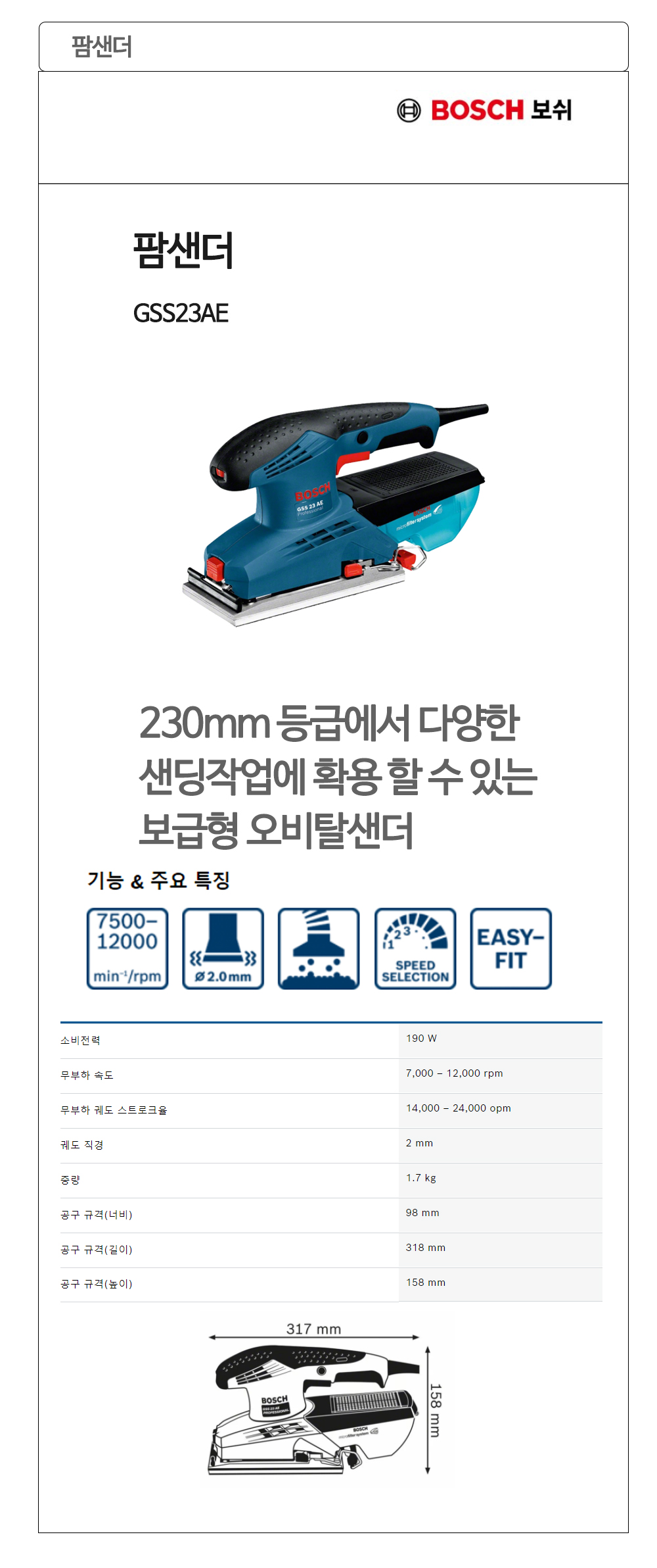 보쉬 오비탈샌더기 GSS23AE 샌더기 샌딩기