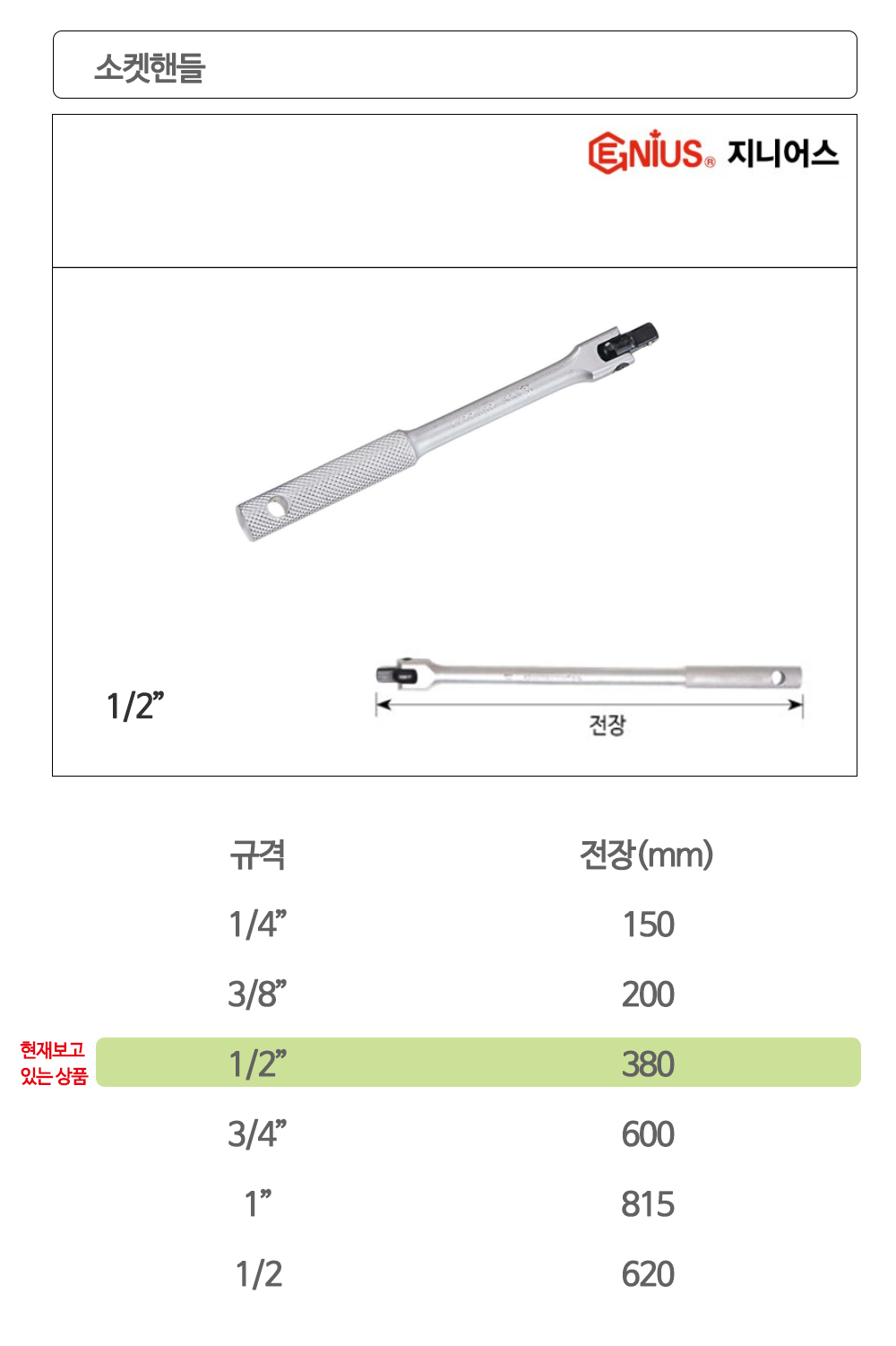 지니어스 롱 소켓핸들 복스대 1/2in x 380mm 이미지/