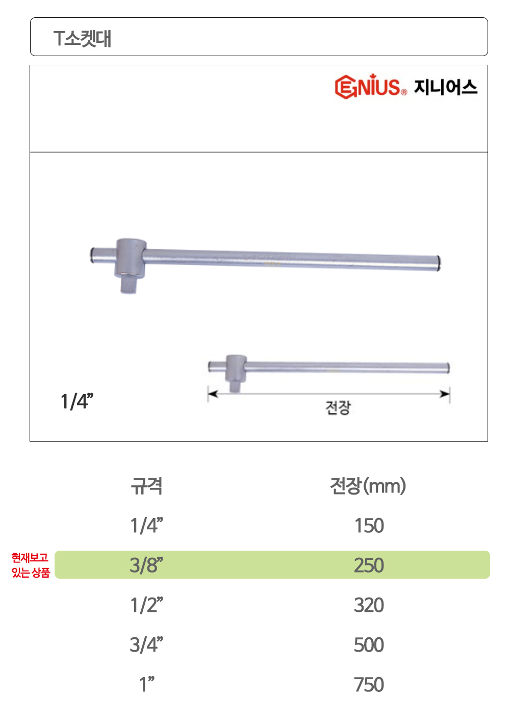 지니어스 T소켓대 복스대 3/8in x 250mm