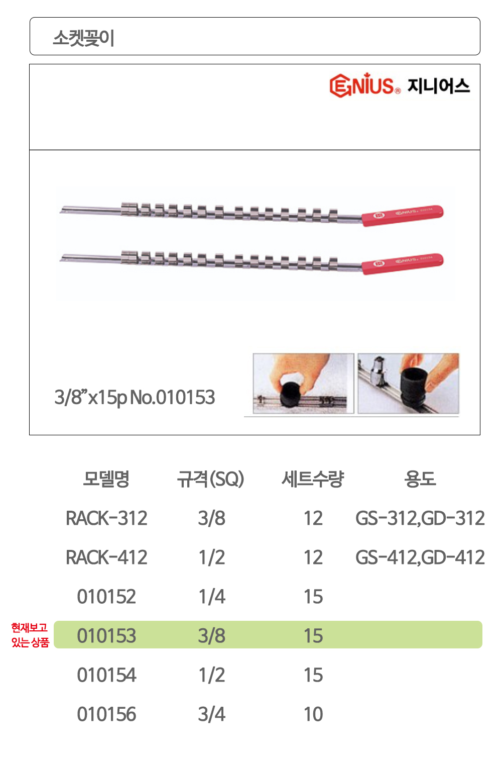 지니어스 소켓꽂이 NO.010153 3/8x15P 이미지/