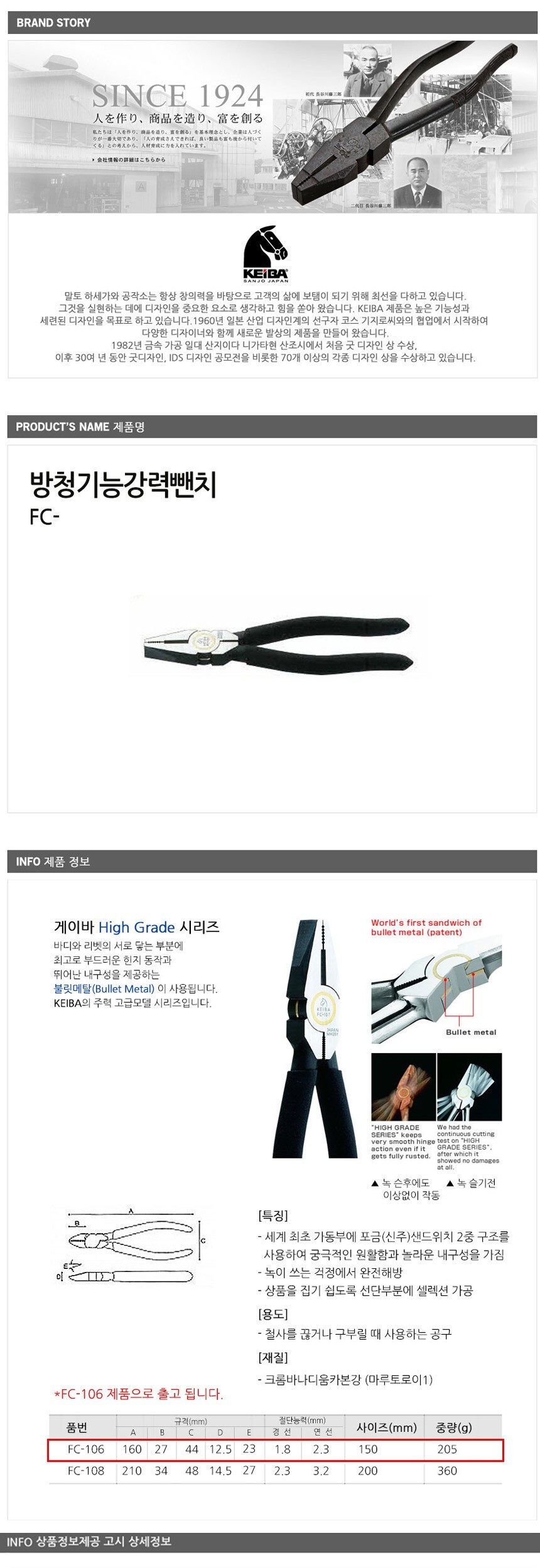 게이바 방청기능강력뺀치FC 106 공구 수공구 수작업공구 수작업 작업공구 이미지/