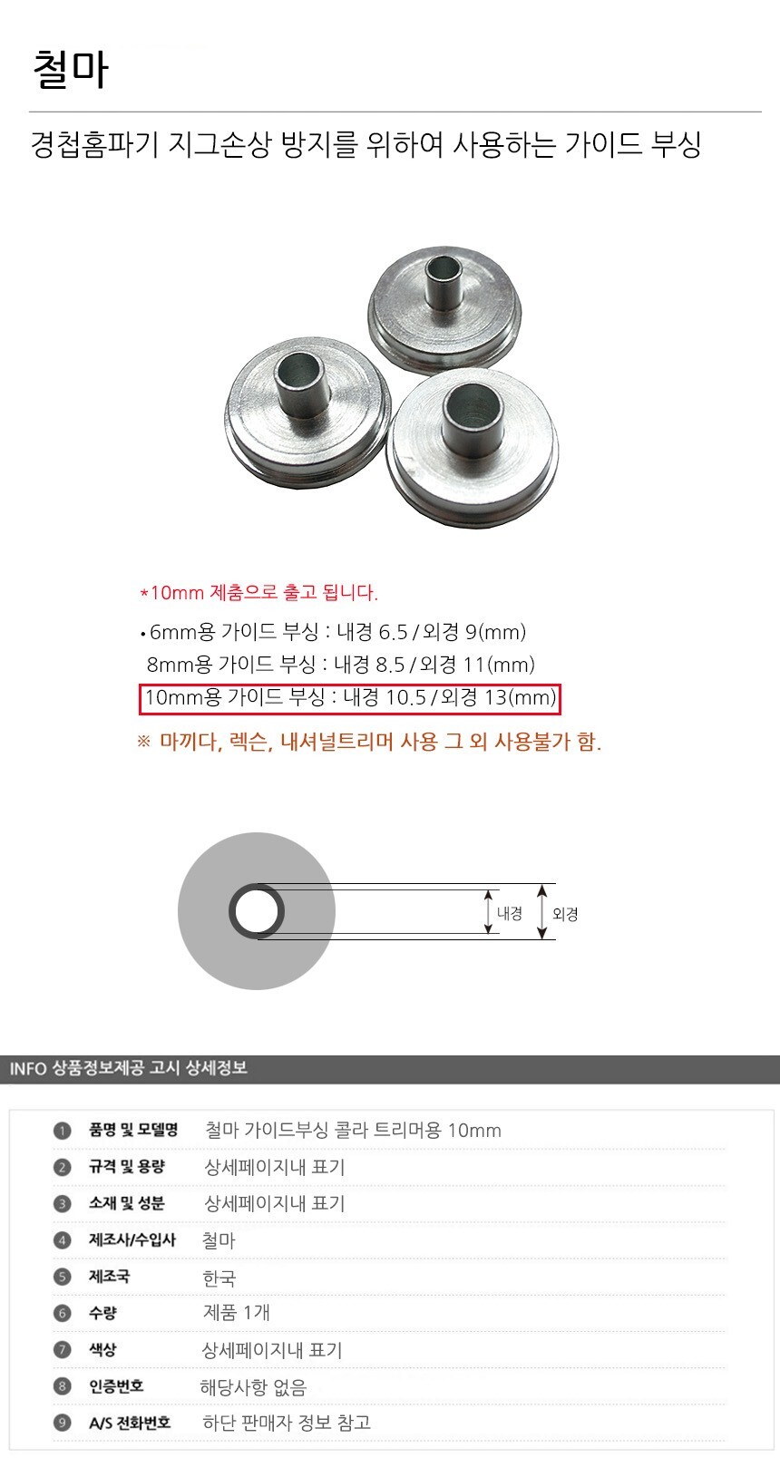 철마 가이드부싱 콜라 트리머용 10mm 공구 수공구 수작업공구 수작업 작업공구 이미지/