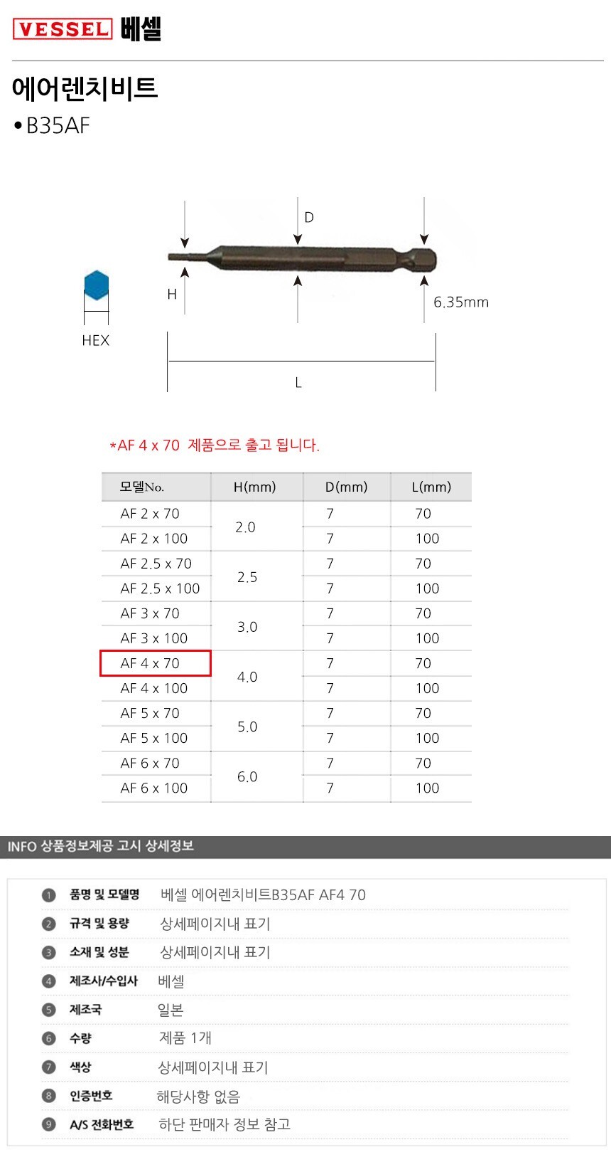 베셀 에어렌치비트B35AF AF4 70 공구 수공구 수작업공구 수작업 작업공구