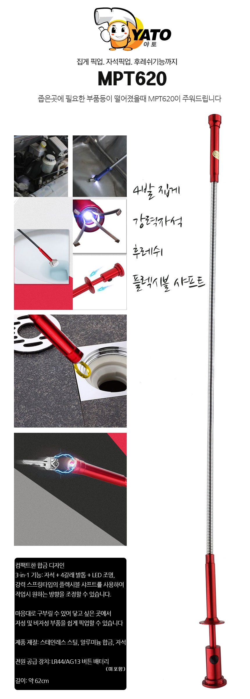 • 품명 및 모델명LED장착 마그네틱 집게 픽업툴 MPT620