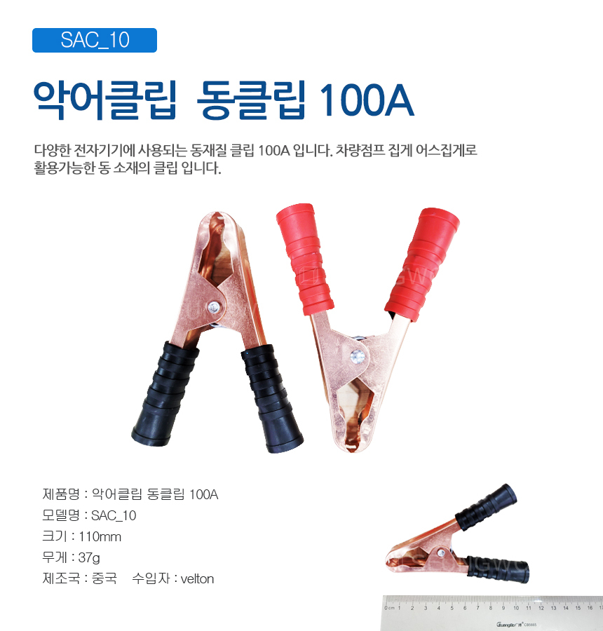 SAC 10 동클립 100A(적흑 2개발송) 점프선 어스집게 동재질 악어클립