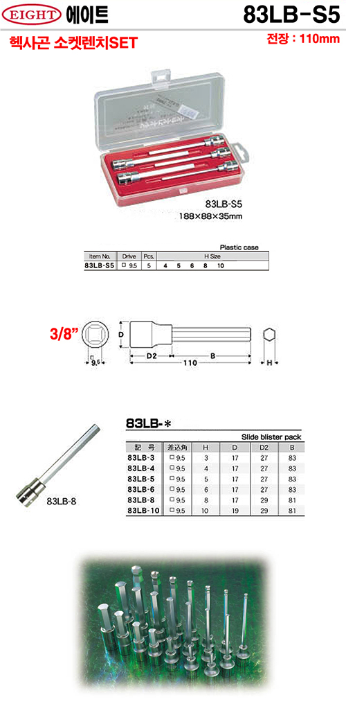 에이트 육각비트소켓세트 롱타입 83LB-S5 3/8인치 *5PCS 이미지/