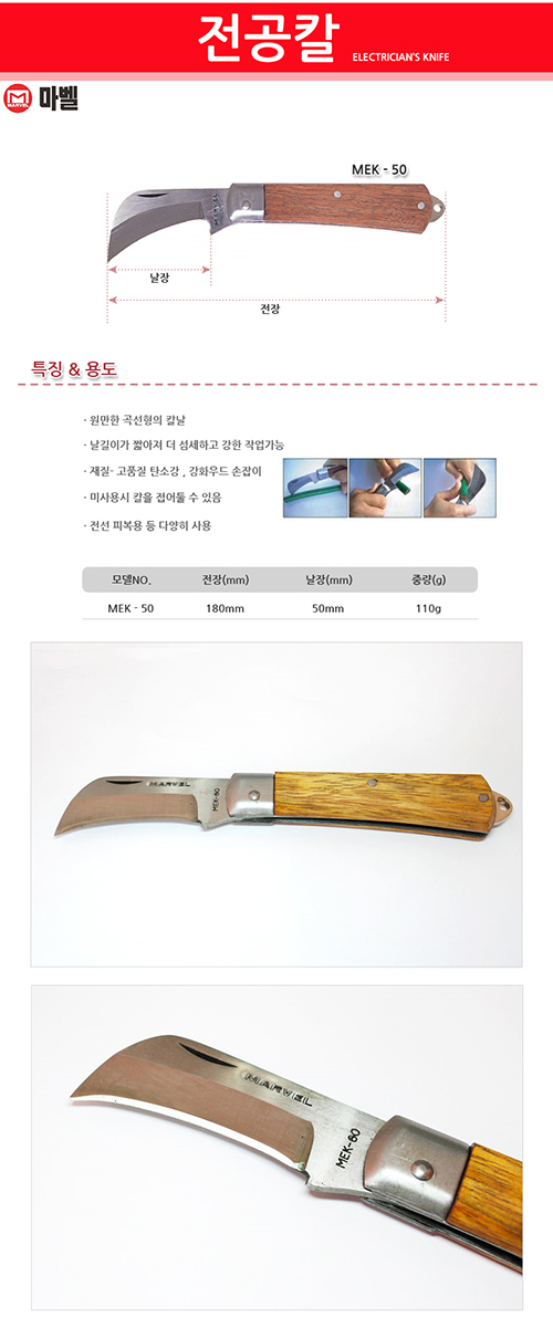 마벨 접이식 전공칼 MEK-50 전선작업 피복용 공구 이미지/