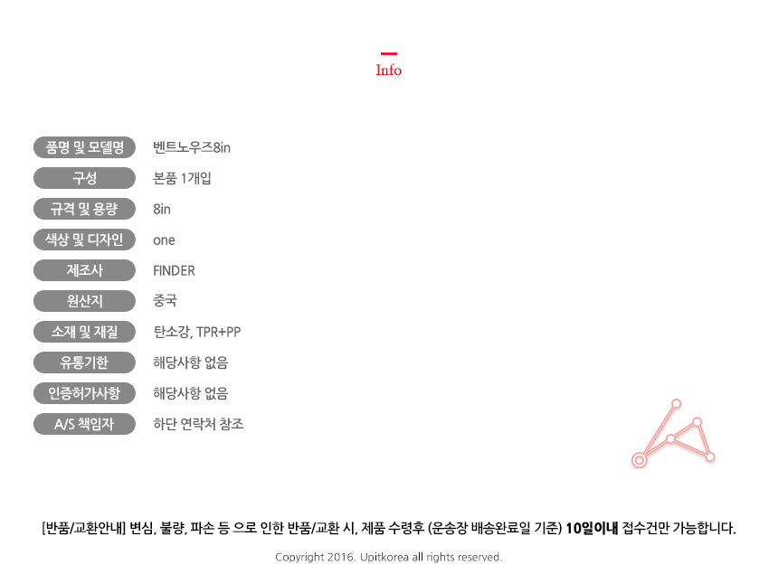 • 반품/환불조건: 도착후 1주일 이내 사용하지 않은 상태에서 가능합니다,초기제품 이상의 경우 동일한 제품으로 1:1 교환원칙, 사용후 제품이상은 A/S를 원칙으로 합니다,