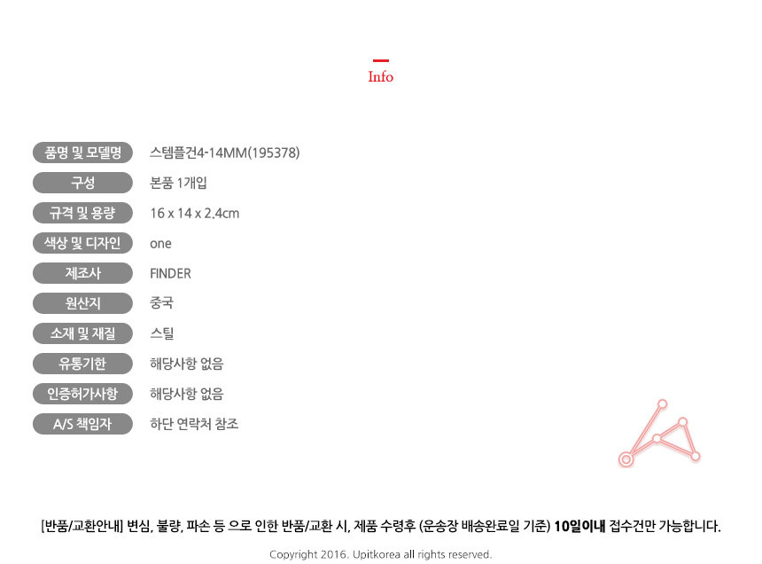 • 반품/환불조건: 도착후 1주일 이내 사용하지 않은 상태에서 가능합니다,초기제품 이상의 경우 동일한 제품으로 1:1 교환원칙, 사용후 제품이상은 A/S를 원칙으로 합니다,