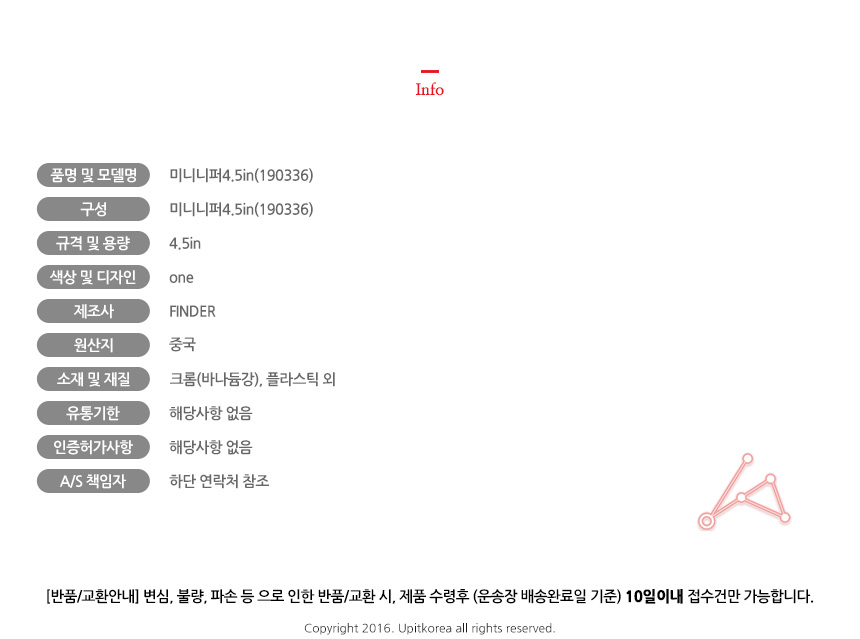 • 초기제품 이상의 경우 동일한 제품으로 1:1 교환원칙, 사용후 제품이상은 A/S를 원칙으로 합니다.