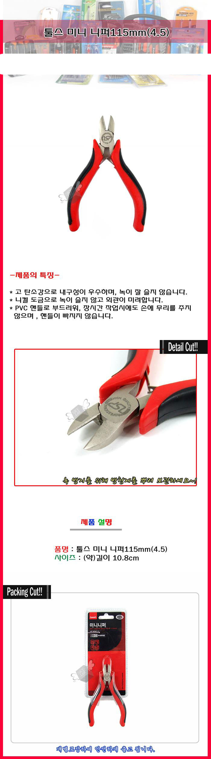 4.5in 톨스 미니니퍼x4개 수공구니퍼 diy공구 수공구