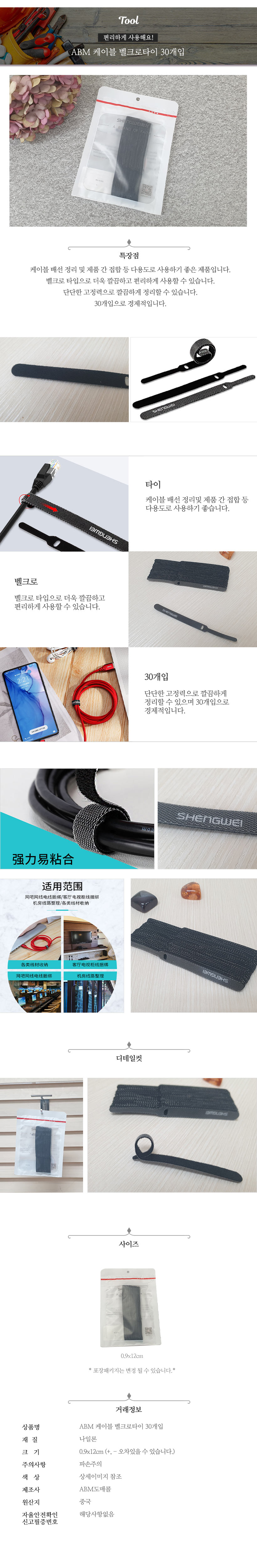 케이블 찍찍이타이 30개입 케이블묶음 케이블정리