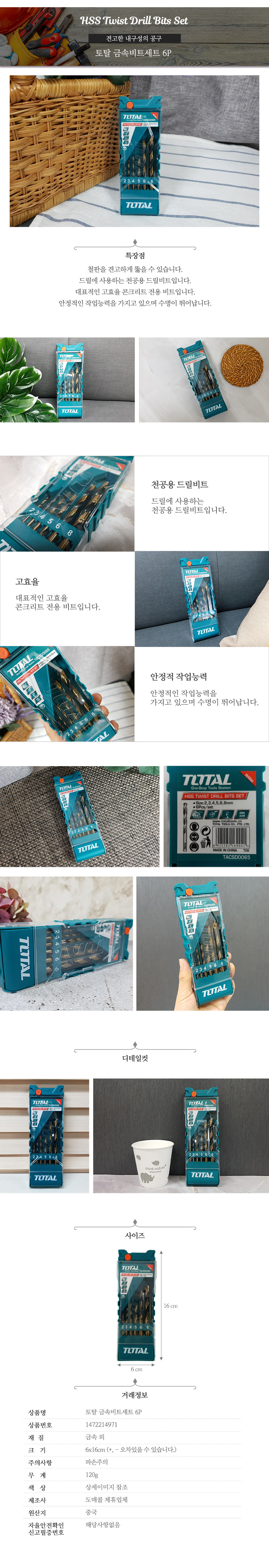금속비트세트 토탈공구 비트 헤머드릴비트 6p 이미지/