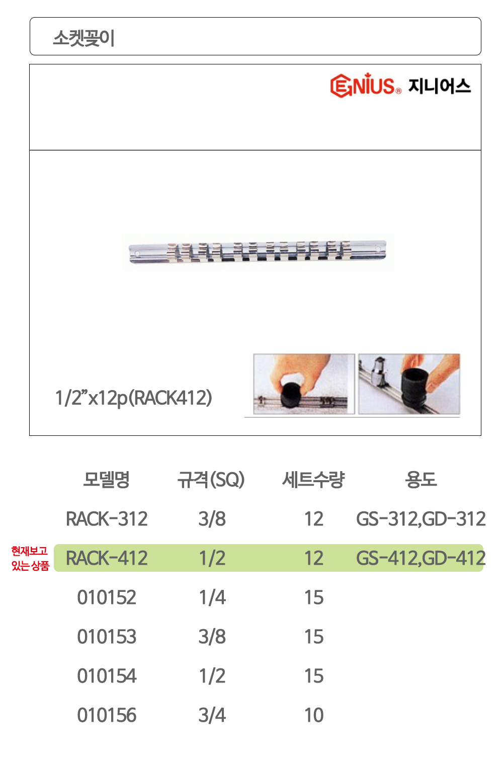 지니어스 소켓꽂이 RACK-412 1/2x12P 이미지/
