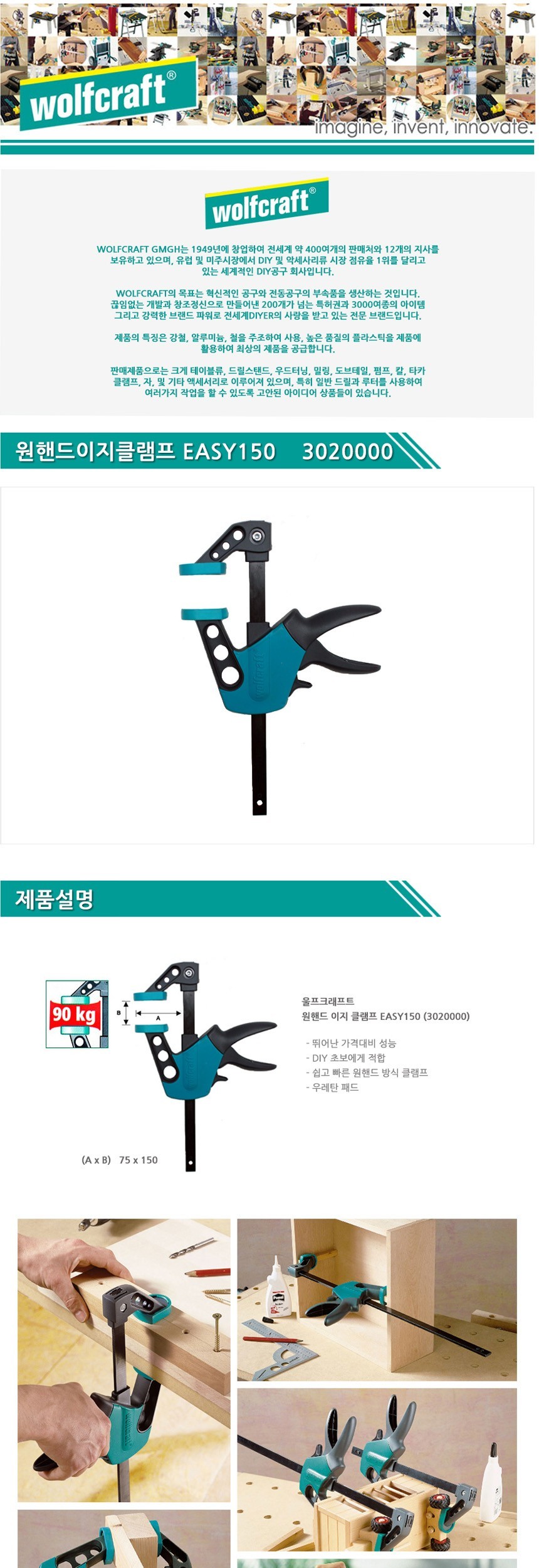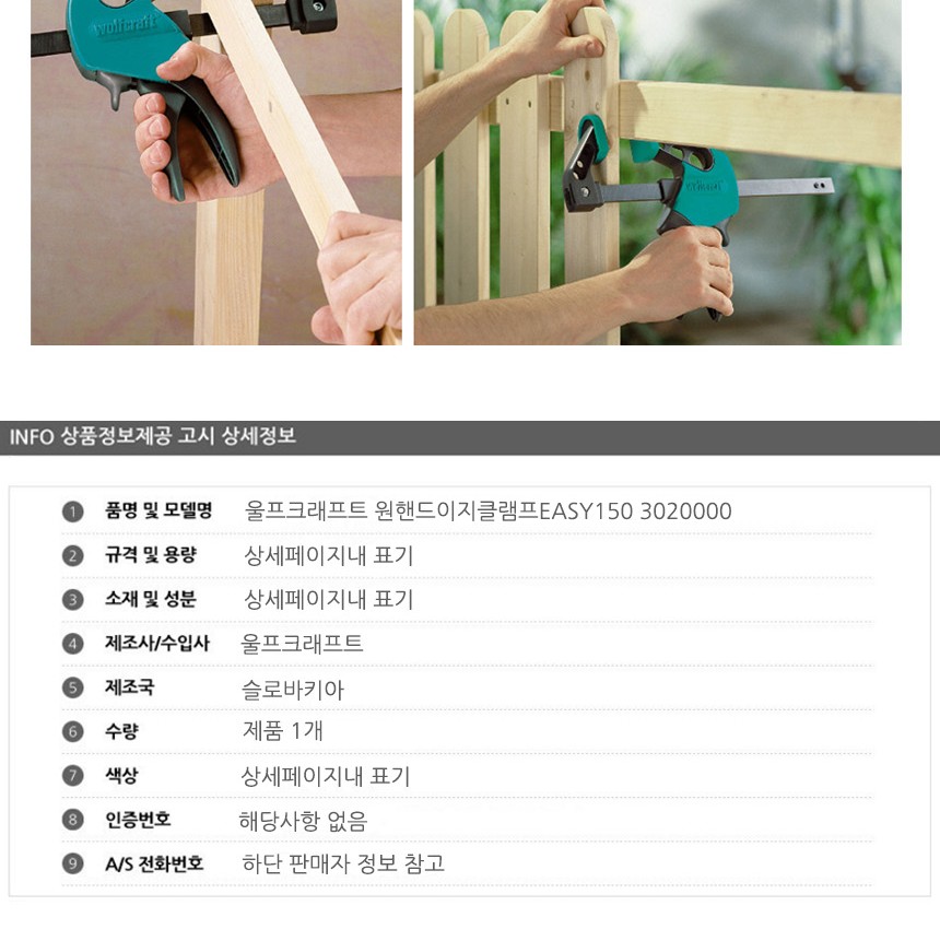 울프크래프트 원핸드이지클램프EASY150 3020000 공구 수공구 수작업공구 수작업 작업