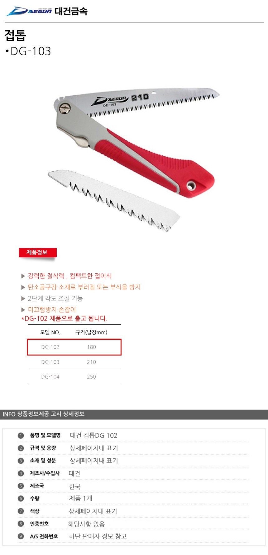 대건 접톱DG 102 공구 수공구 수작업공구 수작업 작업공구 이미지/