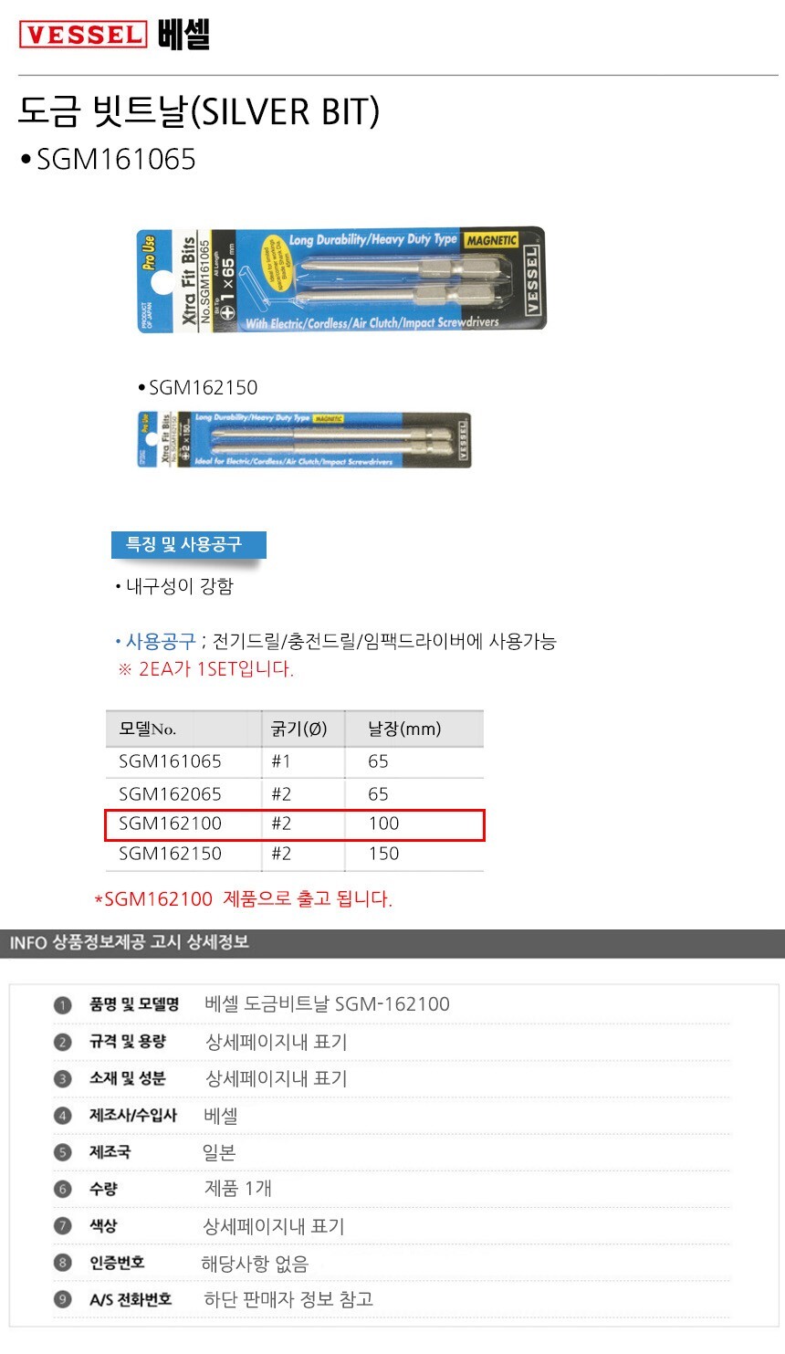 베셀 도금비트날 SGM-162100 공구 수공구 수작업공구 수작업 작업공구 이미지/