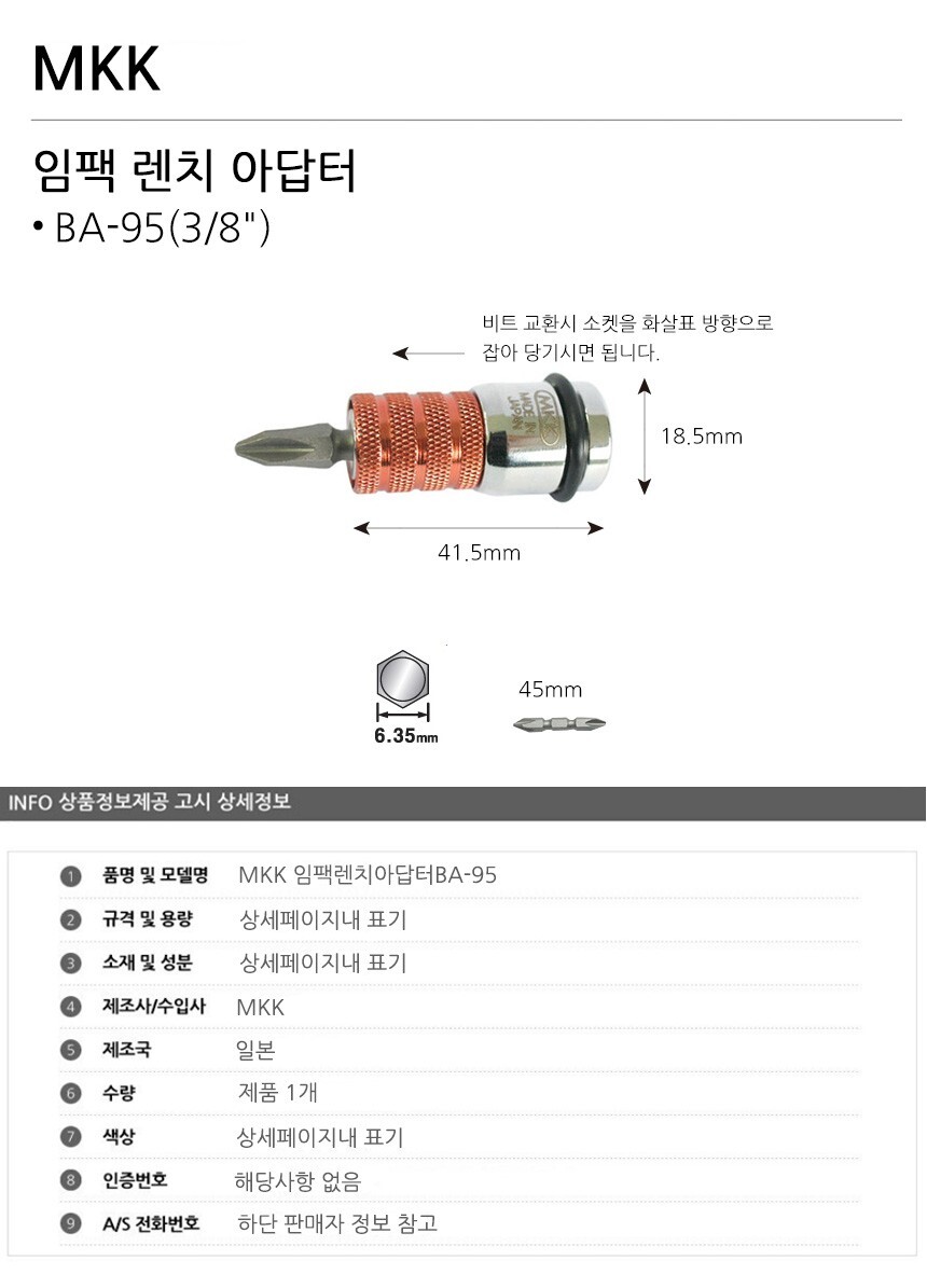 MKK 임팩렌치아답터 BA 95 공구 수공구 수작업공구 수작업 작업공구