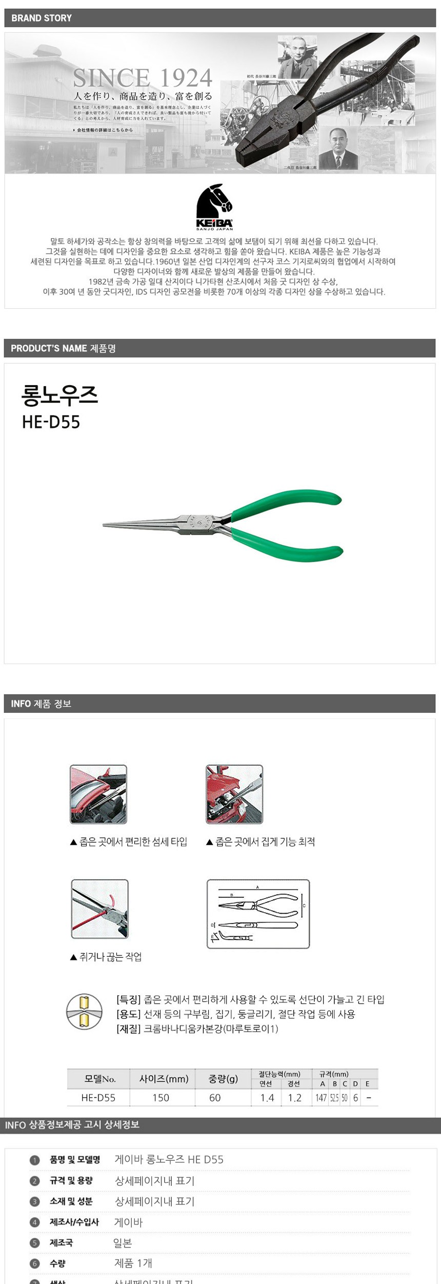 게이바 롱노우즈 HE D55 공구 수공구 수작업공구 수작업 작업공구 이미지/