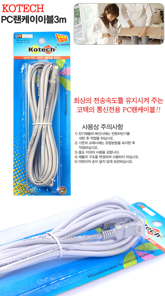 코텍 컴퓨터 랜선 3m 인터넷선 전송속도 pc용