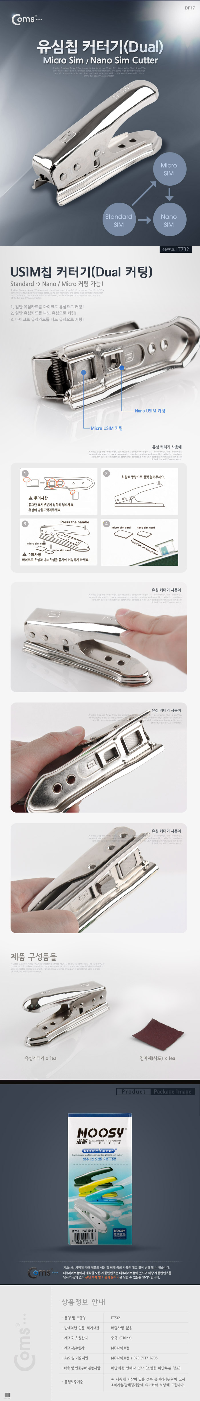 Coms 스마트폰 유심칩 USIM 커터기(Dual) Micro Sim/Nano Sim용