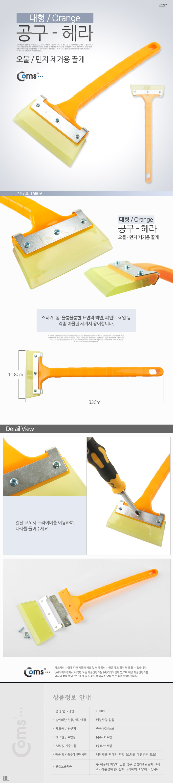 Coms 공구 플라스틱 헤라 대형 시트지 시공 스크래퍼 퍼티작업