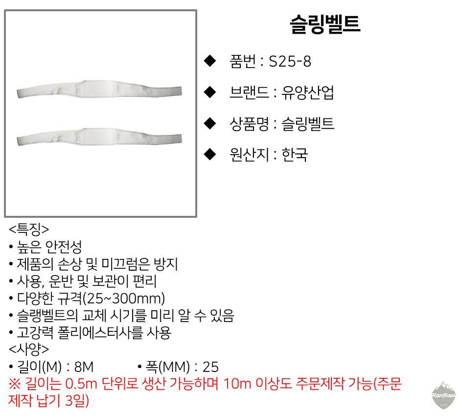 유양산업 슬링벨트 파워벨트 벨트 S25-8 400-5007 이미지/