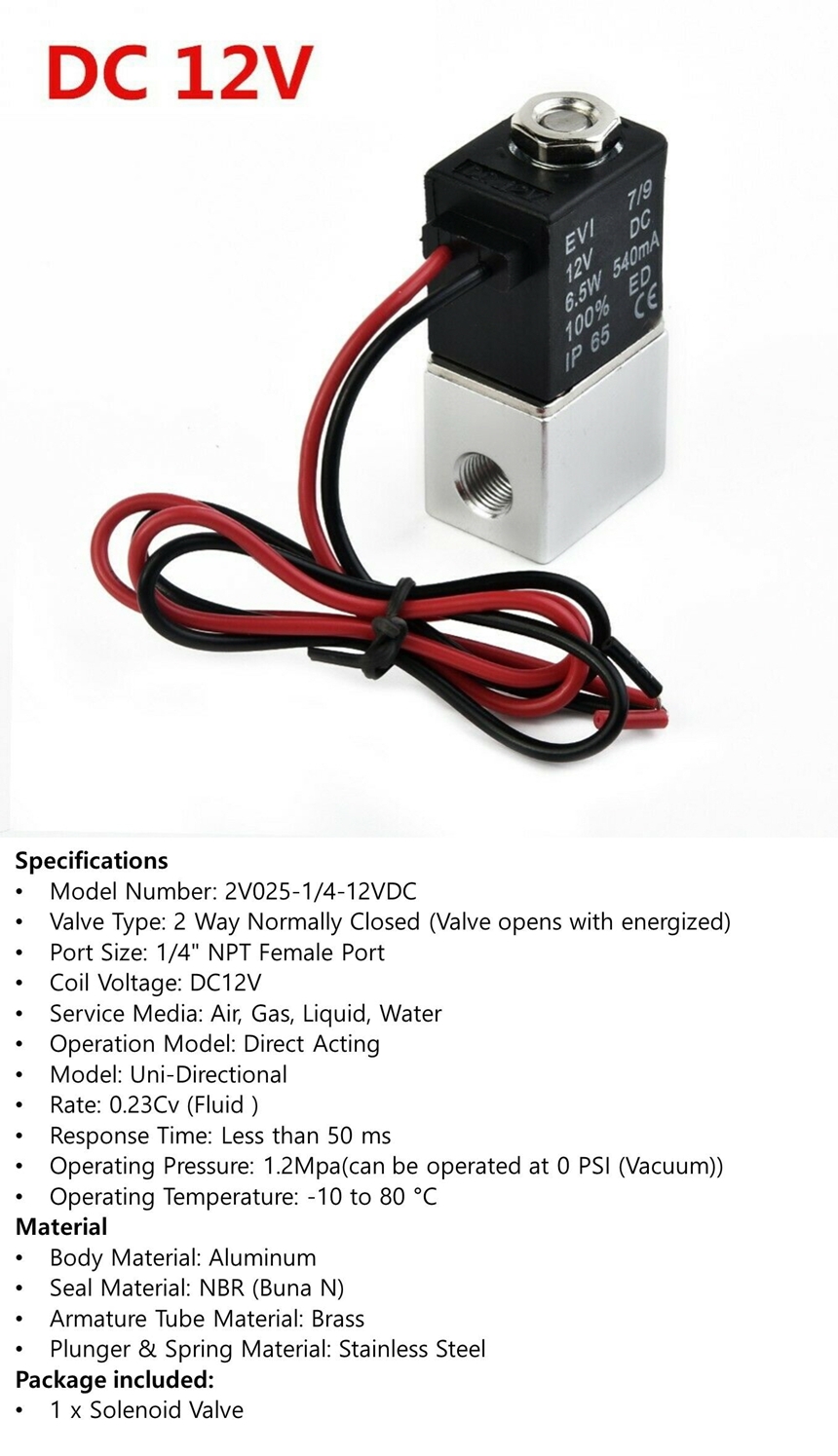 DC12V 솔레노이드 밸브 G1/4 12mm DN8 NC 1.2MPa