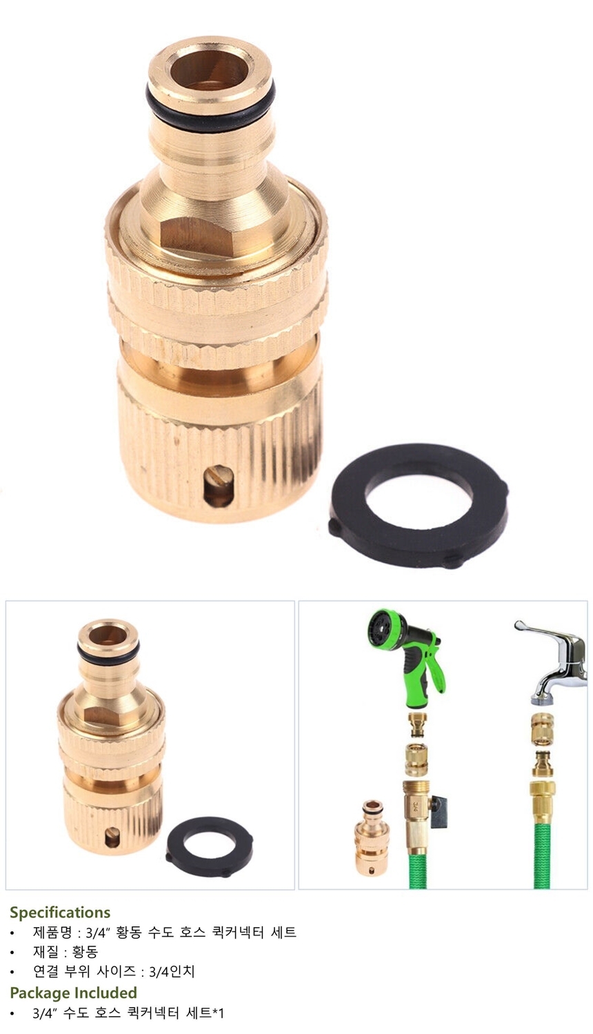 3/4인치 수도 호스 연결 퀵커넥터 세트 황동 관수자재