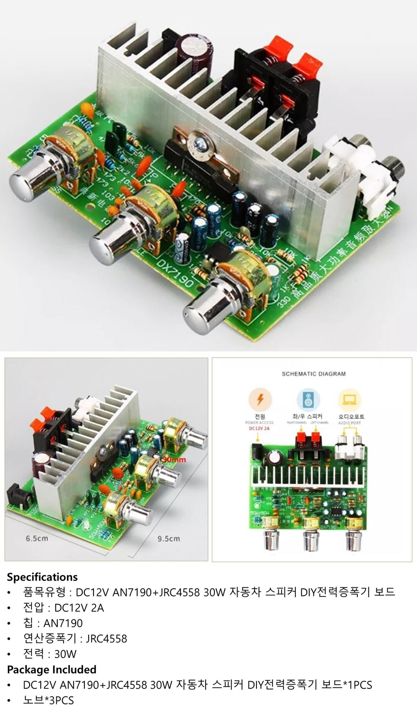 DC12V AN7190 JRC4558 30W 자동차 스피커 증폭보드