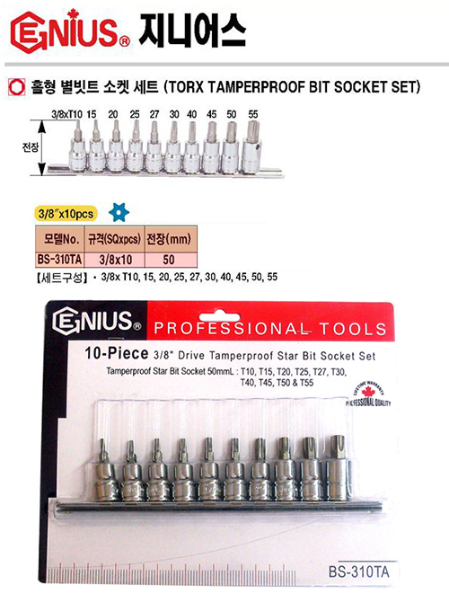 지니어스 홀형별비트소켓세트BS-310TA 3/8인치