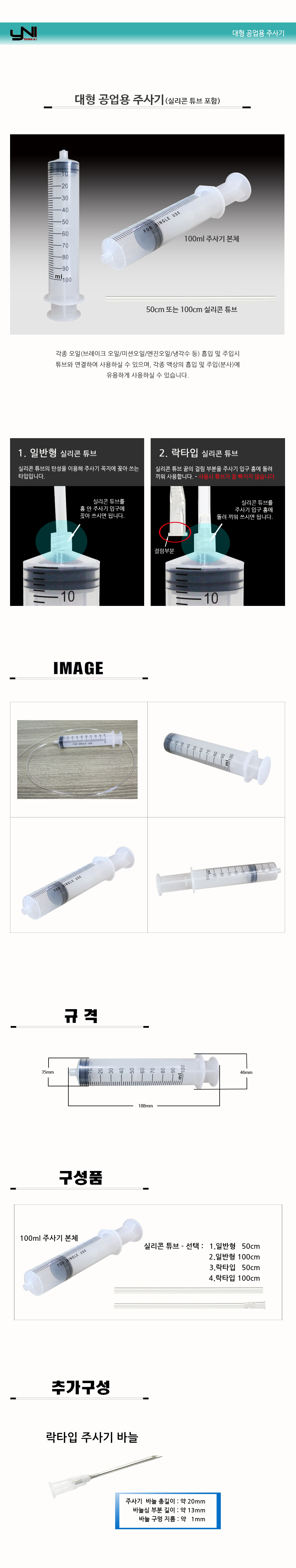 100ml 대용량주사기/다용도액체흡입기/실리콘튜브포함/50cm/100cm