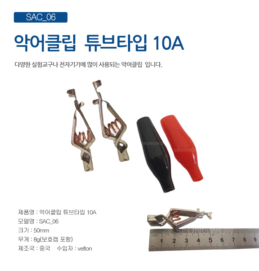 SAC 06 악어클립 튜브타입 10A(적흑 2개발송) 악어집게 테스터클립 DIY