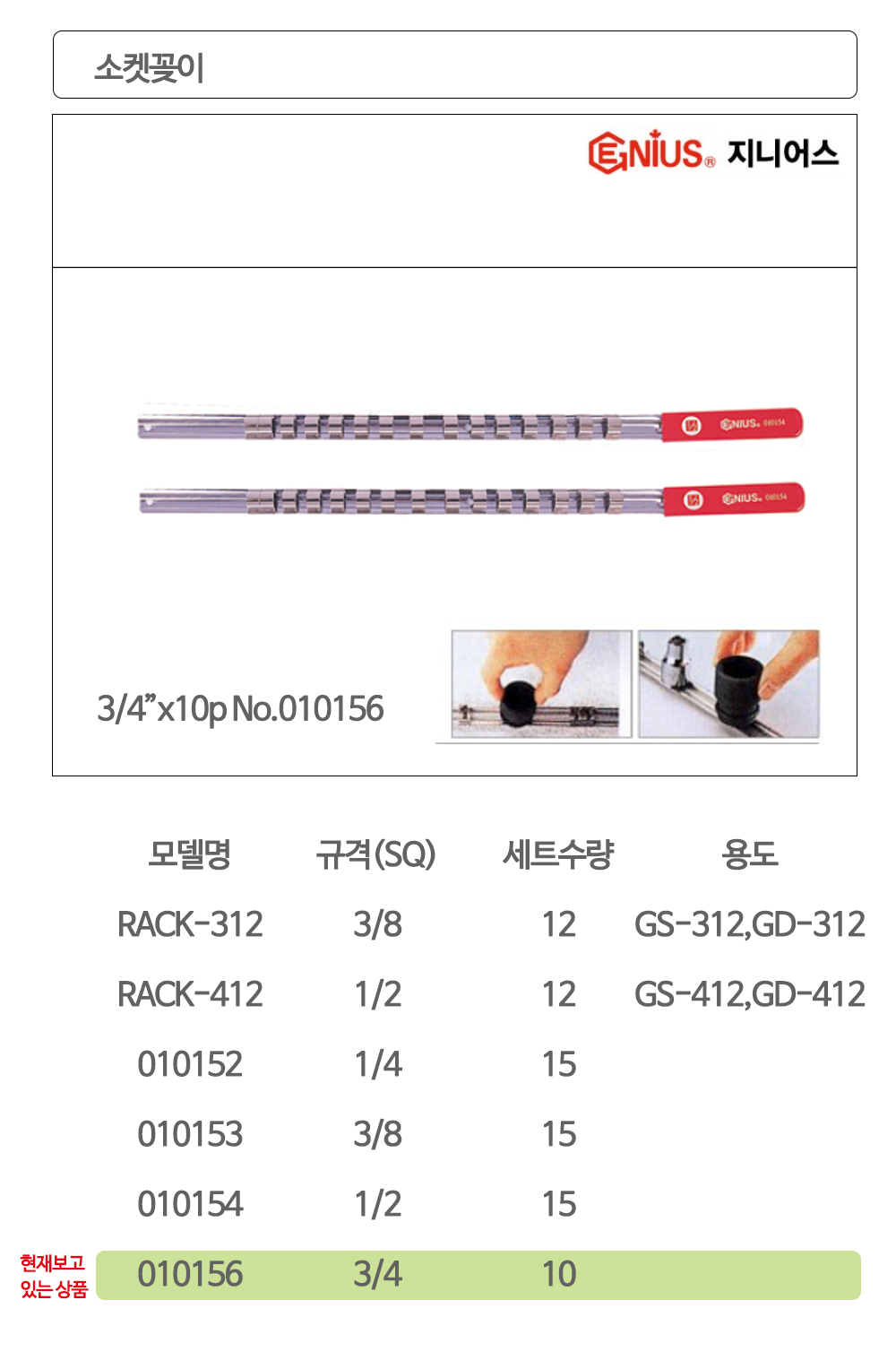 지니어스 소켓꽂이 NO.010156 3/4x15P 이미지/