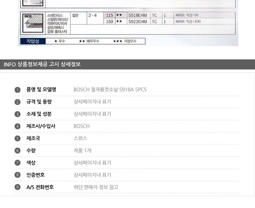 BOSCH 철재용컷소날 S918A 5PCS 공구악세사리 컷소 절삭공구 절단공구 커터기