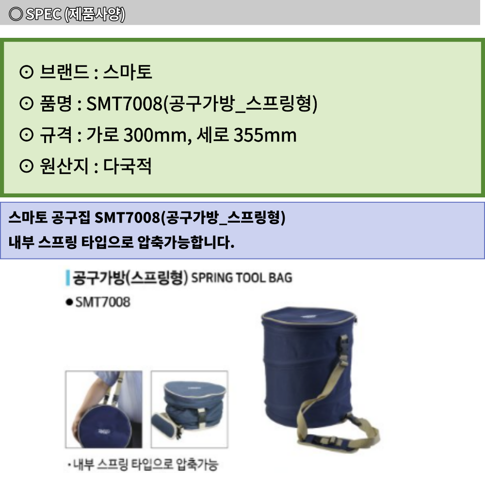 스마토 다용도 스프링형 산업 공구가방 SMT7008 이미지/