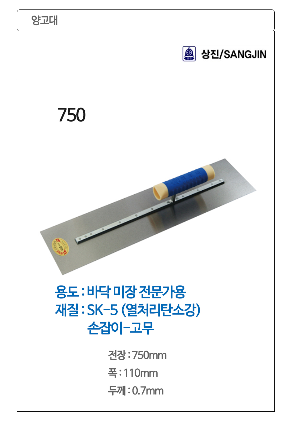 상진 흙손 미장 미장칼 양고대 750x120x0.5mm