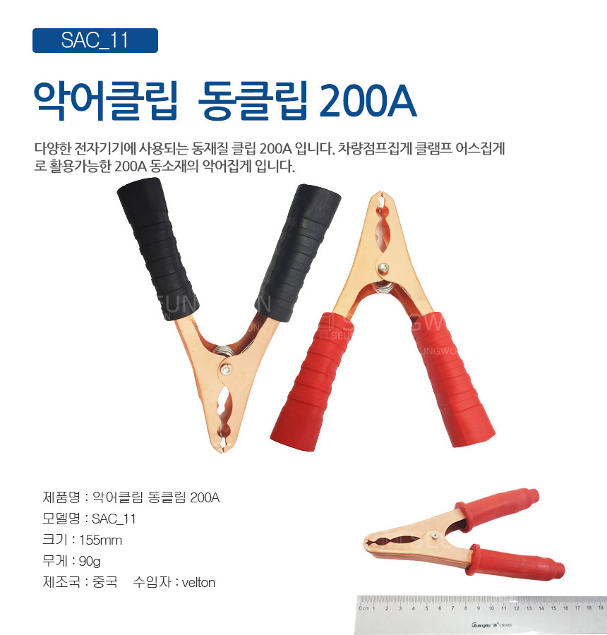 SAC 11 동클립 200A(적흑 2개발송) 점프선 어스집게 동재질 악어클립