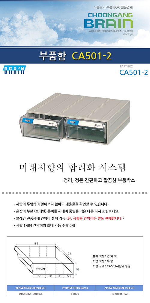중앙브레인 공구함 CA501-2 부품함 부품정리함 wj툴