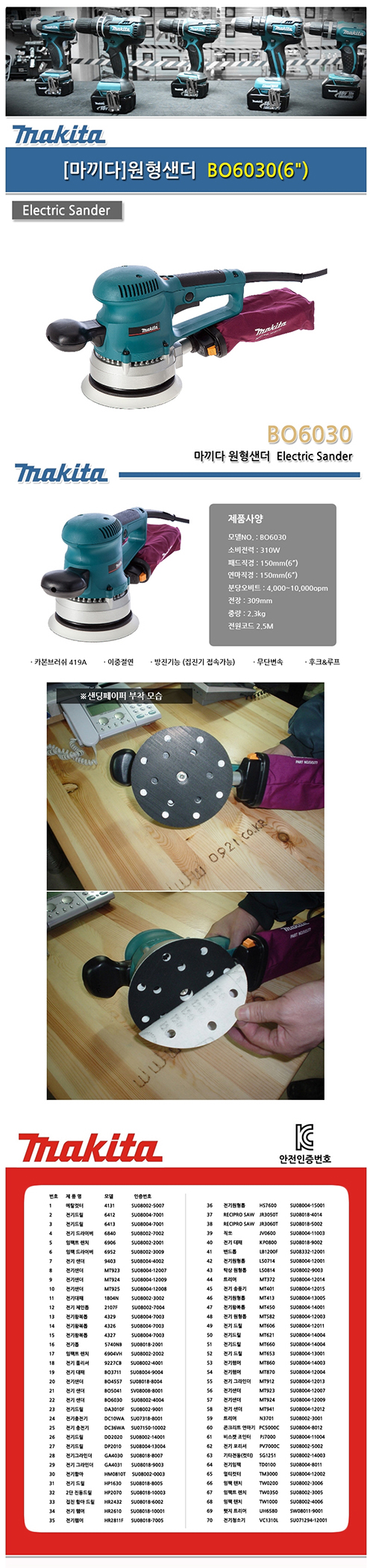 마끼다 원형샌더BO6030 6인치 이미지/