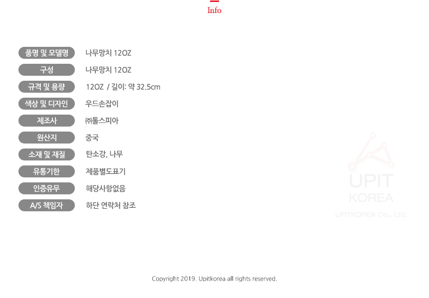 나무망치 12OZ 2292 이미지/