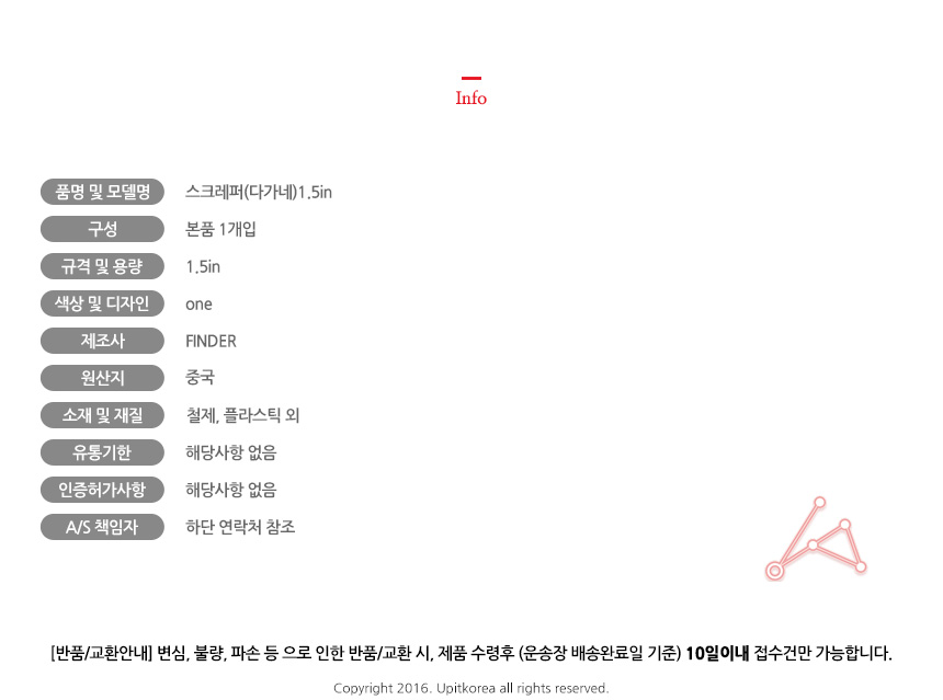 • 반품/환불조건: 도착후 1주일 이내 사용하지 않은 상태에서 가능합니다,초기제품 이상의 경우 동일한 제품으로 1:1 교환원칙, 사용후 제품이상은 A/S를 원칙으로 합니다,