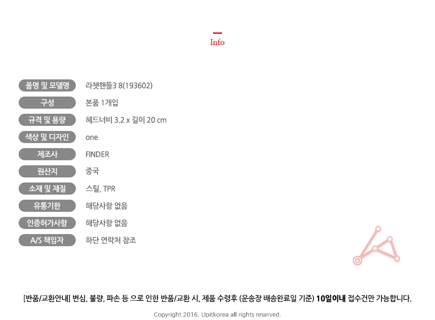 • 반품/환불조건: 도착후 1주일 이내 사용하지 않은 상태에서 가능합니다,초기제품 이상의 경우 동일한 제품으로 1:1 교환원칙, 사용후 제품이상은 A/S를 원칙으로 합니다,