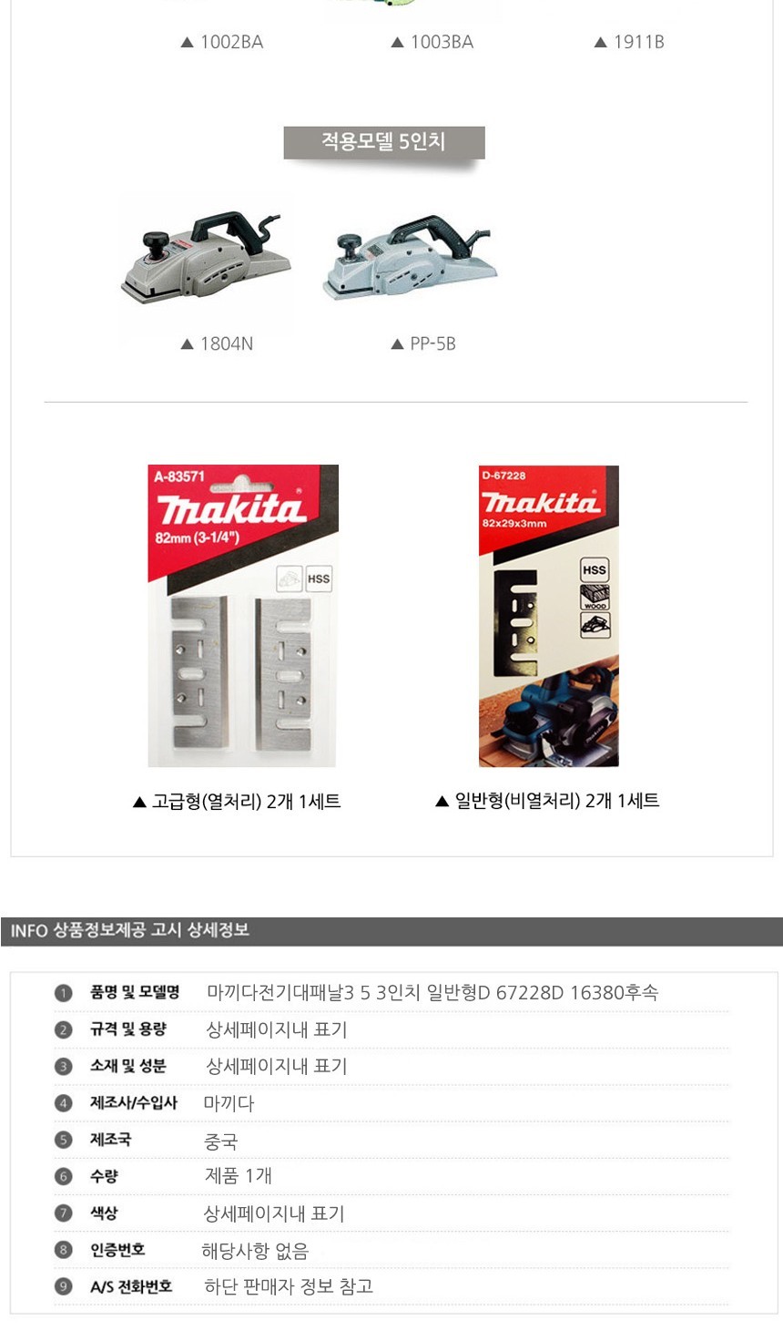 마끼다 전기대패날 일반형 3 4 5 인치 2개입 D67228 이미지/