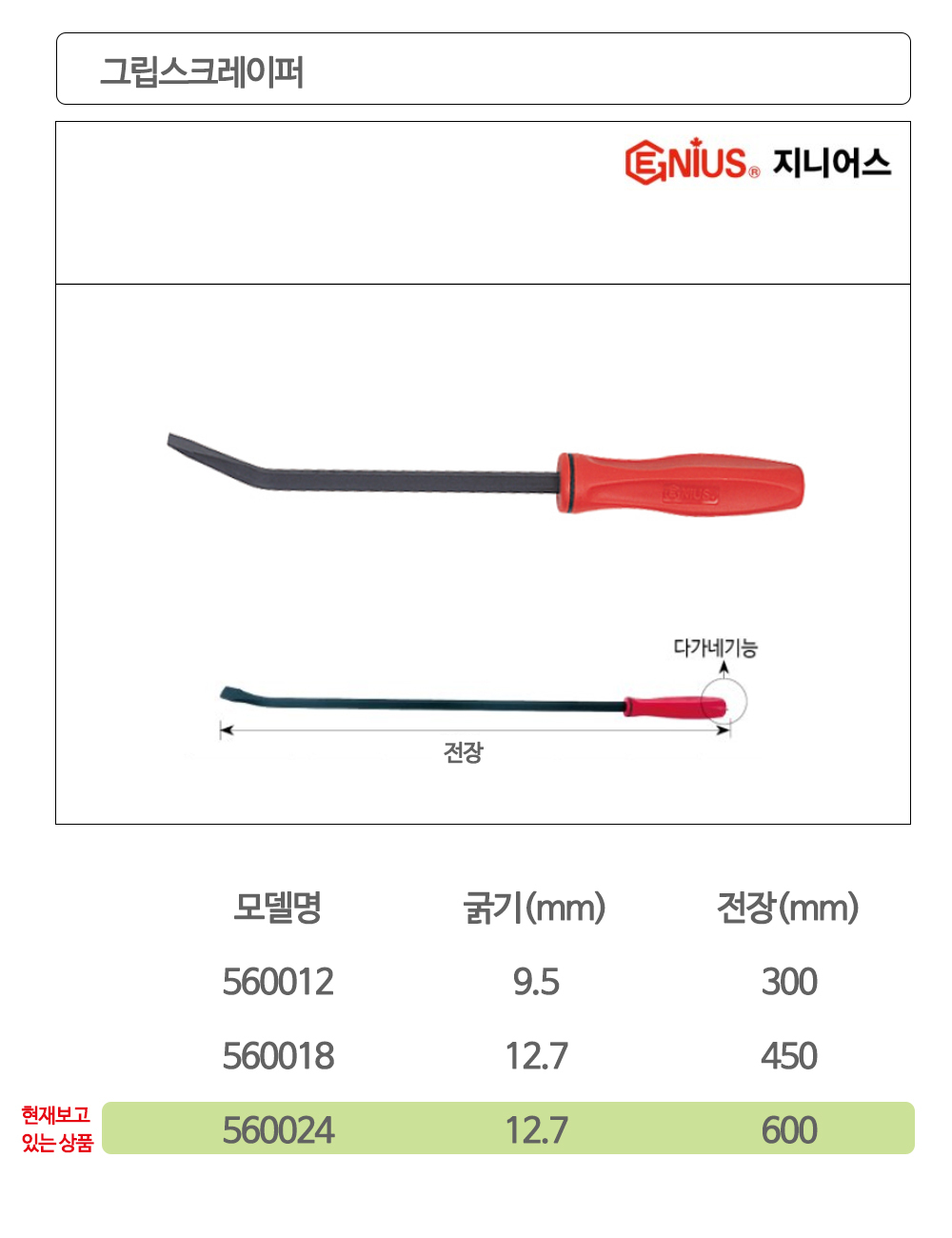 지니어스 그립스크레이퍼 스크레빠 560024 12.7x600mm 이미지/