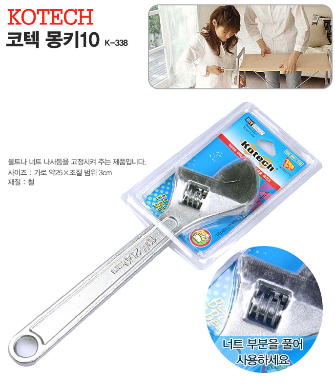 몽키 스패너 육각 렌치 펜치 몽키 스페너 수공구 25cm