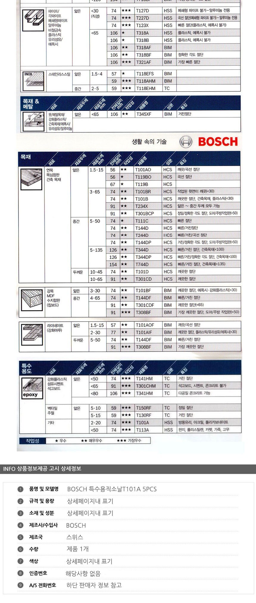 BOSCH 특수용직소날T101A 5PCS 공구 수공구 수작업공구 수작업 작업공구