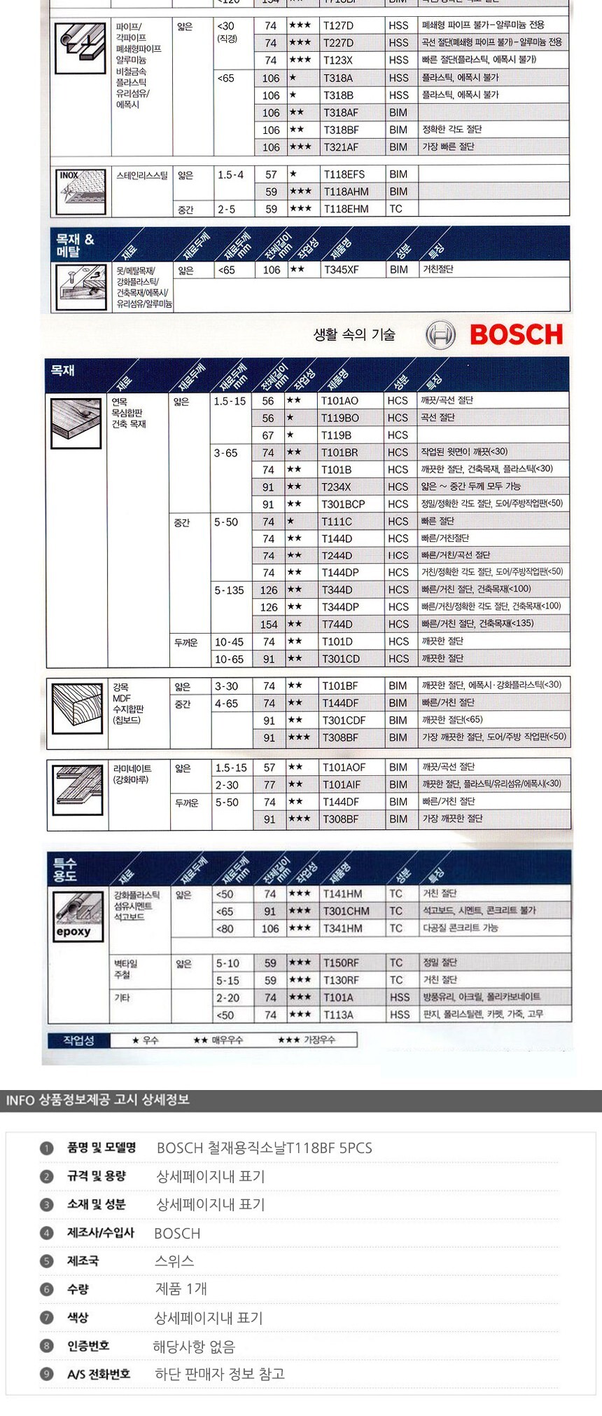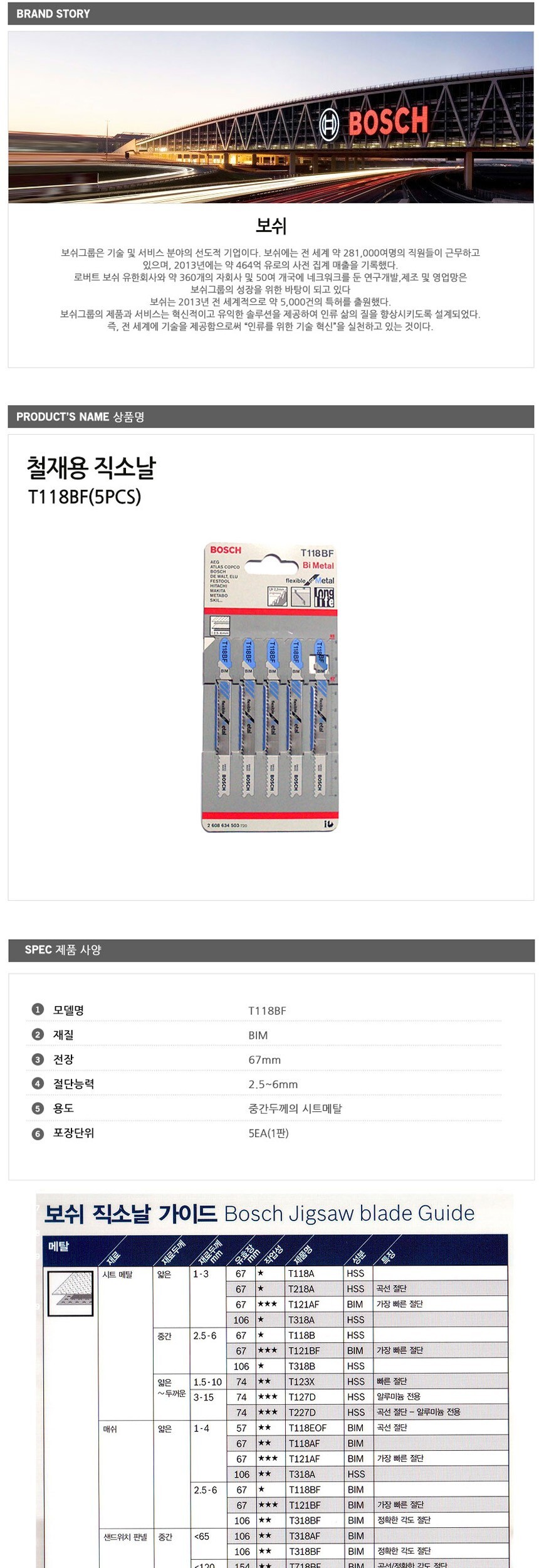 BOSCH 철재용직소날T118BF 5PCS 공구 수공구 수작업공구 수작업 작업공구