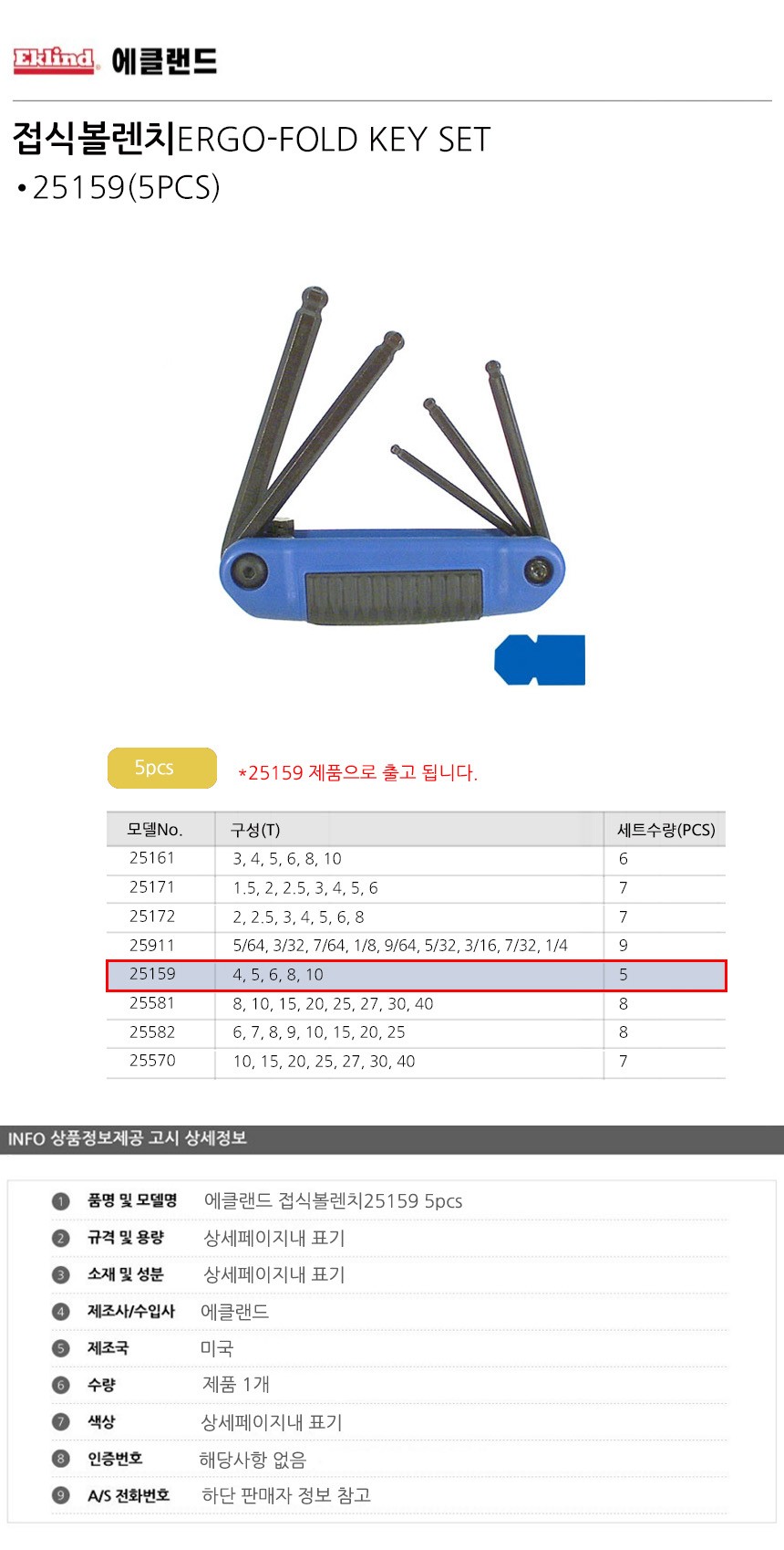 에클랜드 접식볼렌치25159 5pcs 공구 수공구 수작업공구 수작업 작업공구
