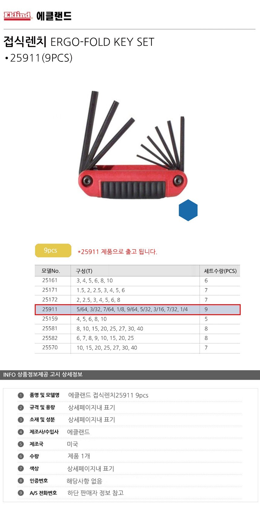 에클랜드 접식렌치25911 9pcs 공구 수공구 수작업공구 수작업 작업공구